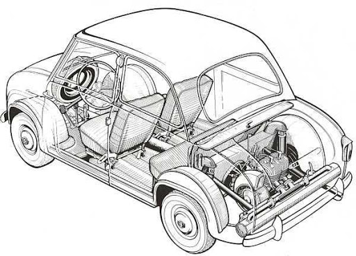 Despite its small size the vehicle offered four seats, whilst the mechanicals were all at the back, with the engine, gearbox and drive placed over the rear axle.