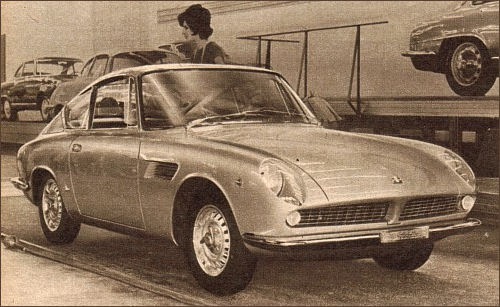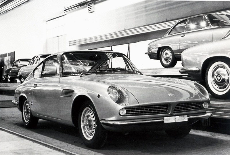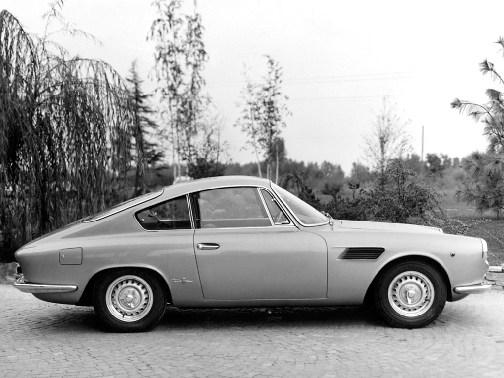 Production was, however, slow to start, despite the large number of orders received, partly due to Ferrari’s lack of interest in the project. The car immediately attracted exasperated customers for its performance with power of almost 100 bhp: incredible for a time when even Ferrari engines at maximum revs still only achieved about 80/85 bhp per litre; and for its high-quality finish with fine leather upholstery, a Nardi wood steering wheel and a range of colours suiting the bodywork well. The gearbox was a 4-speed Bianchi with overdrive and it was fitted with 4-wheel Dunlop disc brakes. In 1963 the spider version of the 1000 GT was presented at the Geneva Motor Show, built in glass-fibre and weighing just 710 kg compared with 830 kg for the coupé, and using the same body-style but open and priced at the same level.