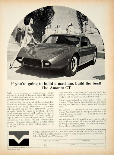 Unfortunately the stand was in between the Ferrari and Lamborghini stands and this meant the poor Amante GT was regarded as one of the many exotic sports cars rather than being appreciated for its excellent quality or as a revolutionary kit car. Bankruptcy followed and its fate was sealed; sales decreased, also because of the contraction of the kit car market in the early seventies. Although the Amante had a circle of admirers, this was not enough to sustain the small builder and after five years the adventure of the sports car and the dream of a group of people died.
