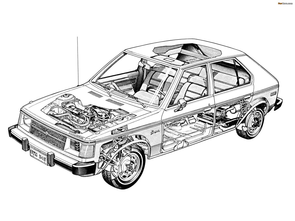 As for the changes, the external ones focused mainly on the front, for both the Plymouth-branded version, which amongst other things kept the Horizon name, and for the Dodge-branded version, called the Omni. As for the mechanicals, the Simca engines were replaced by a 1700 cc Volkswagen motor, revised by Chrysler and delivering 75 bhp, and for the running gear MacPherson struts were chosen for the front suspension instead of torsion bars. In 1981 a new 2.2-litre Chrysler engine was introduced, and the power it produced was increased over the years from 84 to 96 bhp in the final part of its life.