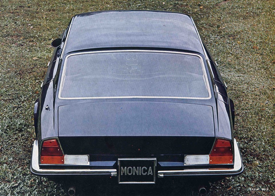 With this phase of the Monica’s design complete, the engine problem remained to be solved, since the Martin V8, despite various improvements, was still unreliable. Hence Tastevin decided to rely on the American Chrysler Corp for the supply of a 5600 cc V8 engine (hence the name Monica 560). The definitive Monica was presented in 1974 at the Paris Show, but the car’s life only continued until 1975, when, after fewer than 10 productions cars had been built, Tastevin decided to abandon the car and sold all the designs and prototypes to Ligier, who never resumed its production.