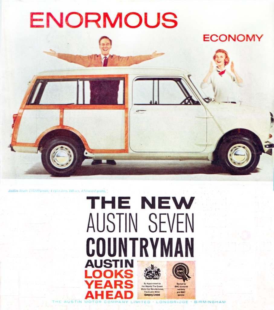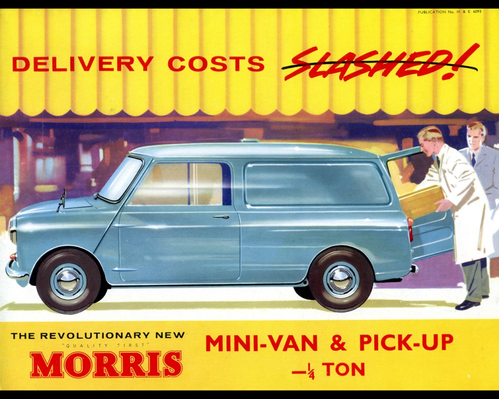 These economies did not, however, prevent the new small BMC car from being an instant success, prompting the group to already the following year present the estate car versions, the Morris Mini Traveller and Austin Mini Countryman, both with external wood cladding, although more basic sheet metal versions were introduced later. Simultaneously with the launch of the estate cars the commercial versions called Minivan and Pick Up were also introduced. In 1961 the Mini myth was consecrated with the introduction of the Cooper, the result of collaboration between the racing car company and the BMC group, giving rise to the birth of an icon of history. The first version of the sporty Mini featured an engine upgraded to 54 bhp from 997 cc, better interior equipment levels similar to those which were by now fitted to the Super and DeLuxe Mini versions, like three circular instruments on the dashboard and hinged rear side windows, but also fitted to Coopers were different radiator grilles, disc brakes, a remote gear-change, nicer seats and minor exterior trim differences.