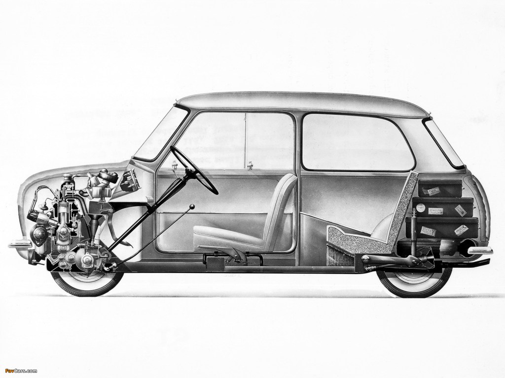Obviously I take it for granted that the history of the MINI by BMW will not be covered since it is really only a pastiche of the original Mini and if we think about it, apart from its body style being inspired by glories of the past, what do these kind of retro revivals really offer? The new MINI is, of course, much safer, more secure and modern than its ancestor but, although it is undoubtedly a very good car, it doesn’t offer any noteworthy innovations, unlike the original Mini, which in 1959 changed the way in which cars are conceived forever.