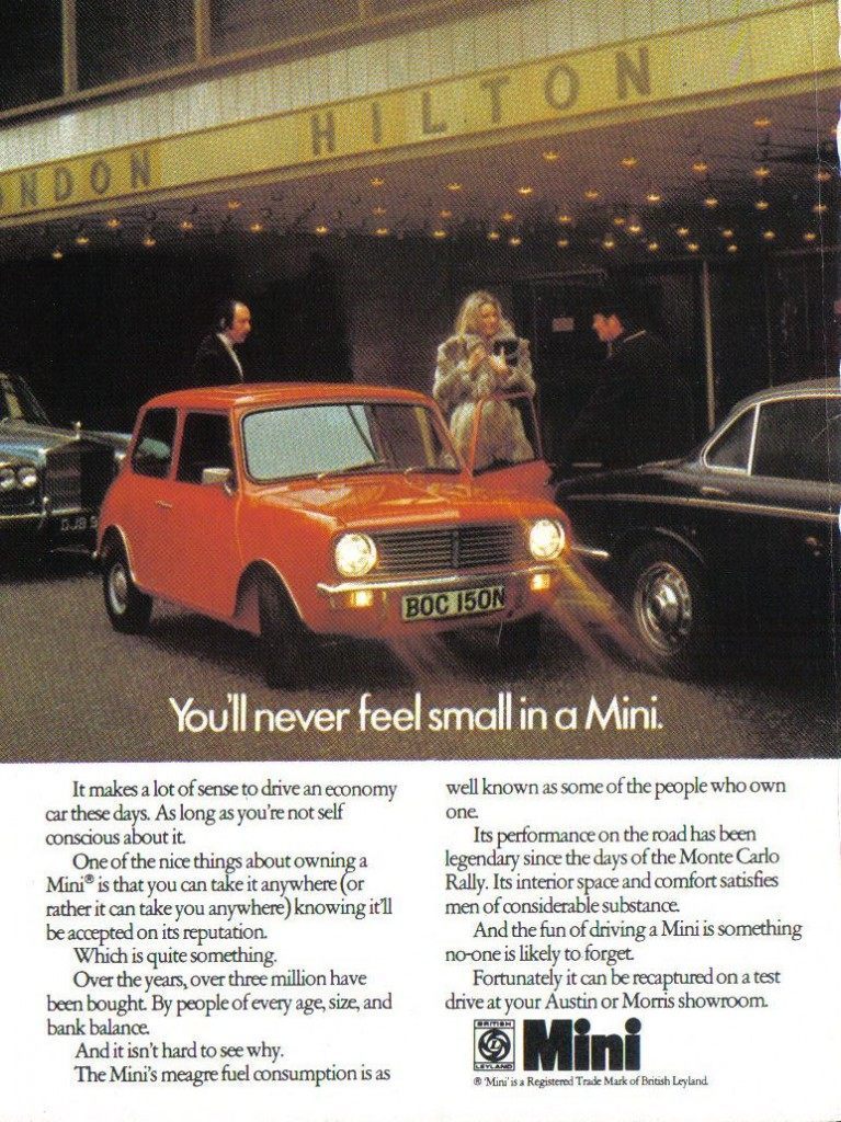 It should firstly be remembered that since its debut the Mini has been marketed under various marques, starting with Austin and Morris, passing through three-volume versions marketed under the Wolseley and Riley marques, in Italy as Innocenti, in Spain as the Authi from Pamplona and, finally, under the glorious Rover marque. To sum up, the Mini has been there for a good slice of the British motor industry’s days, from its heyday to its ruinous collapse.