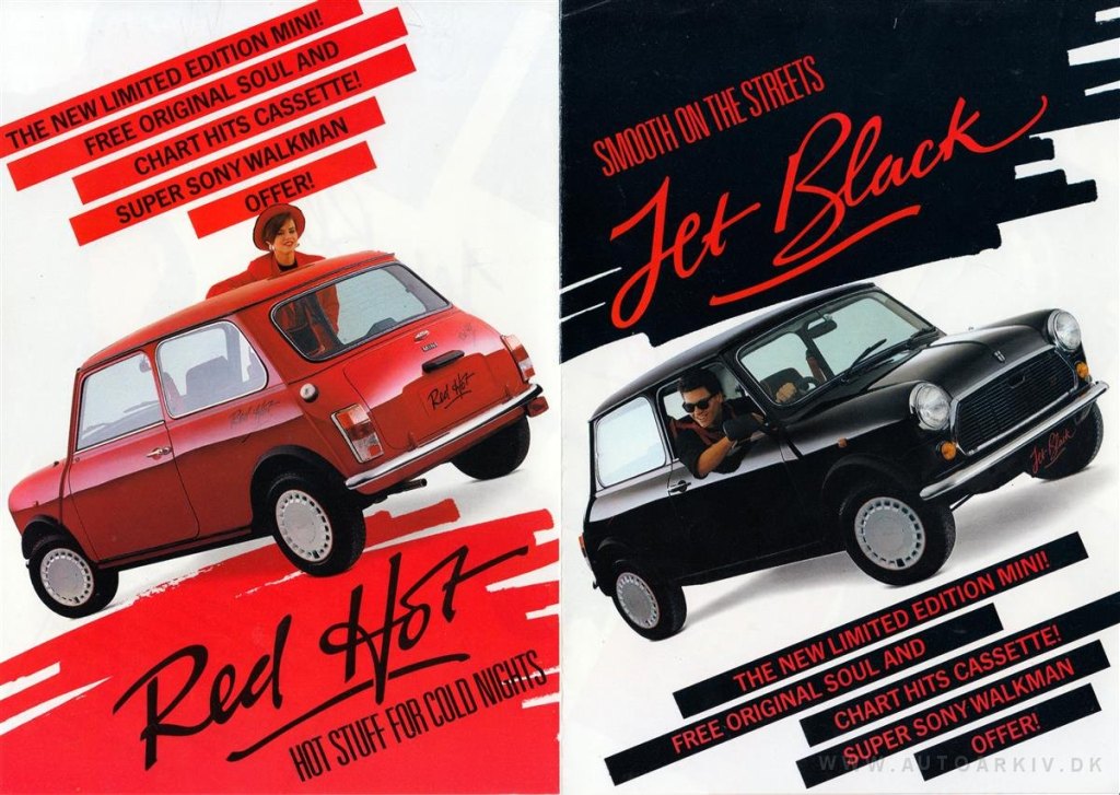 To keep a product which was now beginning to feel the weight of the years fresh, British Leyland introduced the fourth series of the Mini in 1976, recognisable by the plastic front grille and other minor details. In 1980 there was a second attempt to replace the Mini with the launch of the new Austin Mini Metro, later becoming known simply as the Metro, which saw the light of day during a very complex period for the company, which had to face the disposal of marques and closure of plants in an attempt to stem the huge losses. The Metro was limited to supporting the classic Mini, which was updated with the introduction of the 1000 HL, replacing the 850 version, on the price-lists from August of that year. In 1982 the revamped Austin Rover Group introduced further updates to the range, still based on the 44 bhp 1000 cc engine, introducing the City E, HLE and Mayfair levels of trim. In 1984 more improvements led to the fifth series, in which front disc brakes were introduced together with wider track camouflaged by new plastic wheel-arches and 12-inch wheels in place of the 10-inch ones of the originals. In the ’84 range the special commemorative 25-years version was also added, based on the Mayfair and with a limited number of 5000 cars built for the twenty-fifth anniversary of the car’s original launch. Numerous special versions appeared from the middle of the 1980s through the 1990s, including the Chelsea, Park Lane, Black Jack and Red Hot, the Studio 2 and, later, the Racing Green, Flame Red and Checkmate versions with a contrasting white roof to signify the return of that style in the Cooper version of 1990.