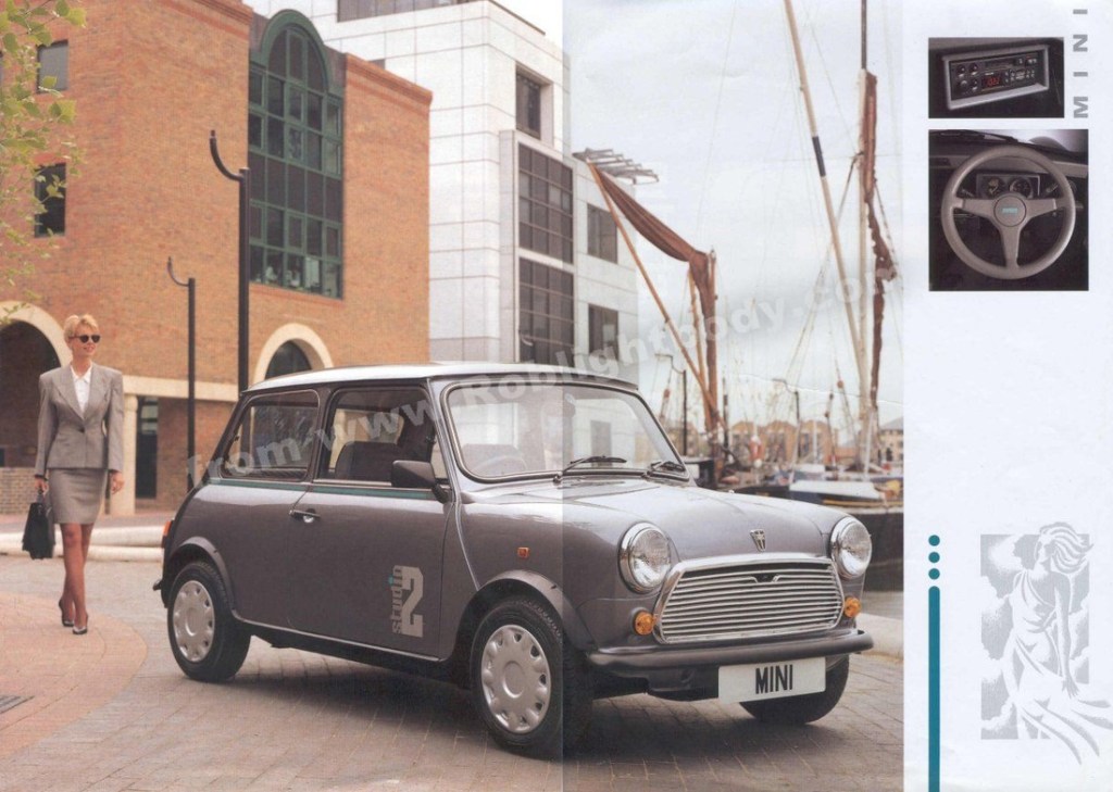 Also in 1992 the Mini Cabriolet, developed in collaboration with the German Karmann company, saw the light of day at the Birmingham Motor Show, featuring refinements such as a wooden dashboard and leather steering wheel, whilst the unusual plastic bumpers with built-in spoiler stood out and were connected to the wheel-arches, all painted body-colour. Only 414 examples of this special model were made before production ended in October 1996. Also in 1996 the sixth series of the Mini was superseded by the seventh and last series, differing from the previous one by the adoption of a driver’s side airbag and a glove box on the dashboard, whilst from the technical point of view the radiator was moved from inside the left wing to the front.